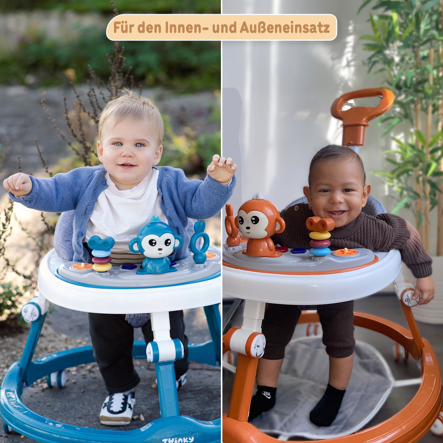 Der Twinky Babywalker unterstützt, ohne zu übernehmen. Dein Kind lernt selbst, das Gleichgewicht zu finden, eigene Bewegungen zu steuern und Schritt für Schritt Selbstvertrauen aufzubauen. Und du? Du kannst genießen, statt dir Sorgen zu machen.