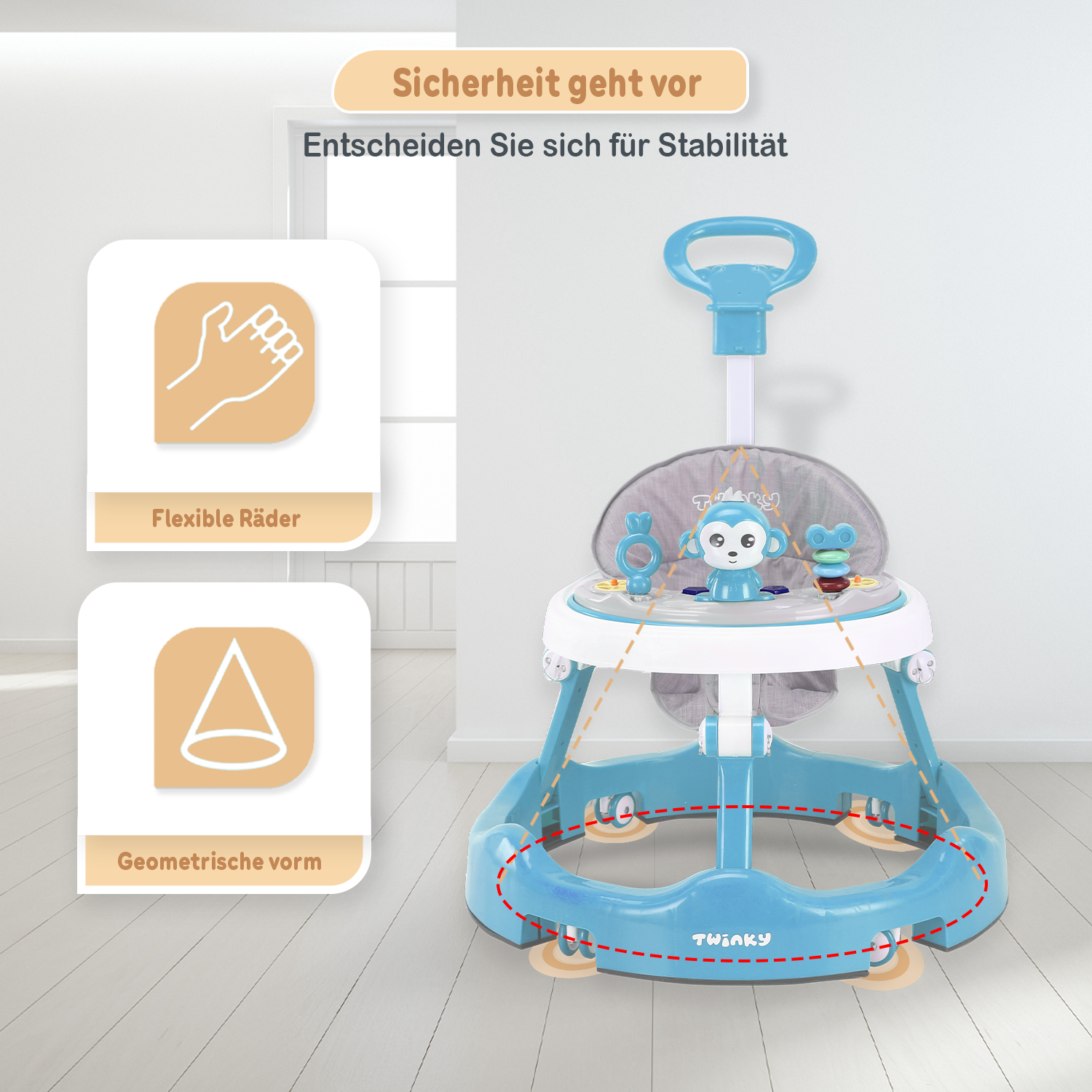 Die ersten Schritte sind ein Meilenstein, den man nie vergisst. Ein Moment voller Staunen, Stolz und einer Prise Spannung. Der Twinky Babywalker ist dafür da, diese erste Entdeckungsreise so sicher und selbstbewusst wie möglich zu gestalten.