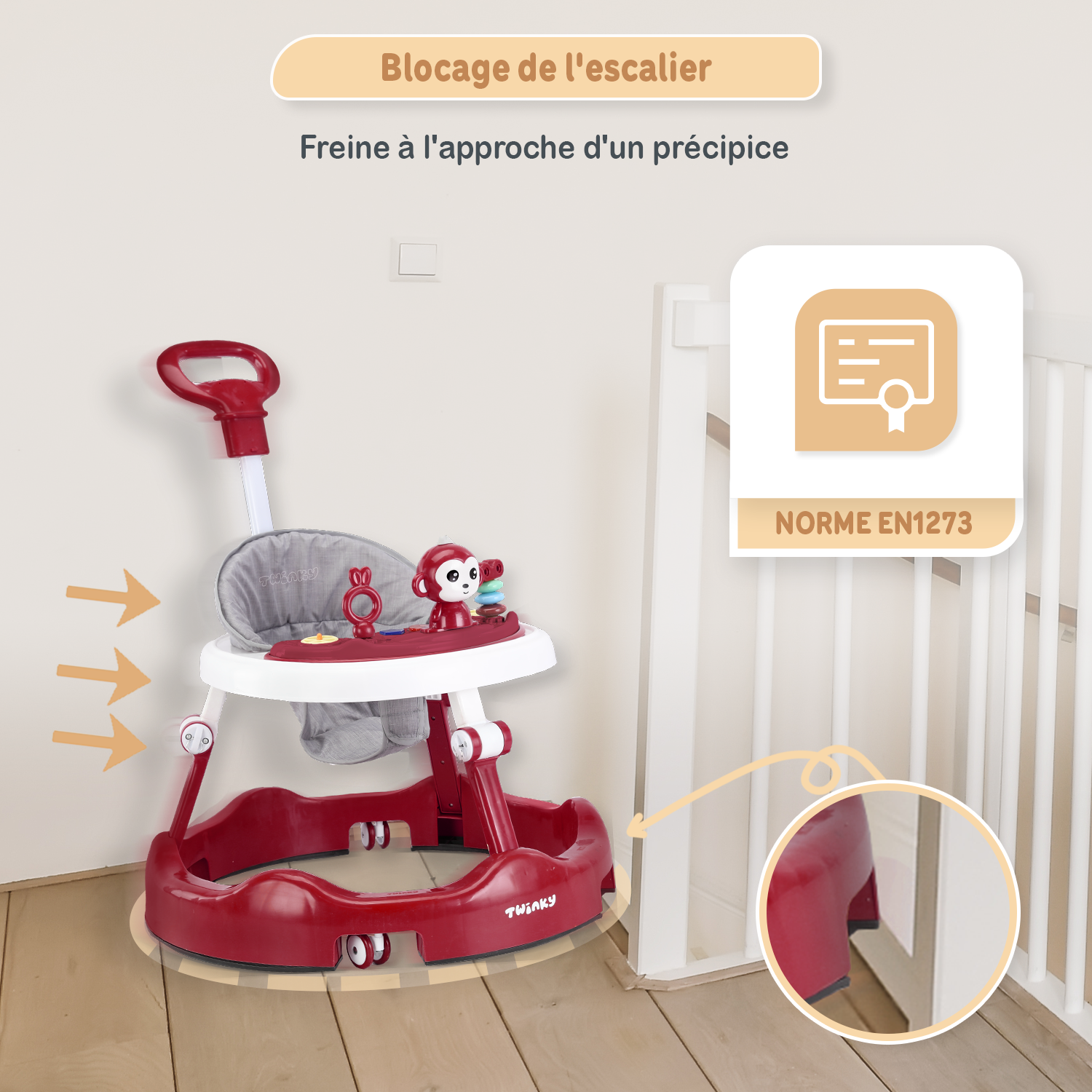 Bien que le Twinky Babywalker ait été conçu en pensant à la sécurité, une surveillance est toujours recommandée. Assurez-vous que votre bébé se trouve dans un endroit sûr et évitez les escaliers ainsi que les zones dangereuses.