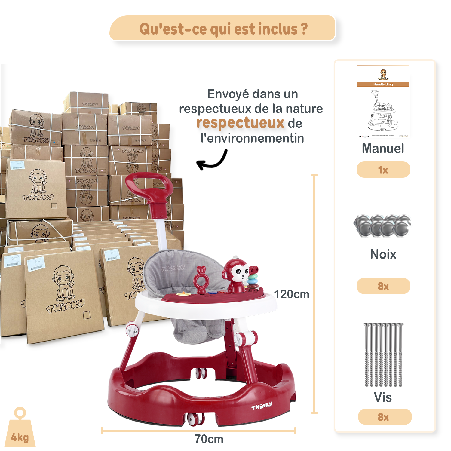Le trotteur pour bébé Twinky est parfait pour les petits aventuriers ! Idéal pour manger, faire ses premiers pas et s’amuser. Confort et plaisir réunis dans une adorable petite voiture. Tout ce dont votre bébé a besoin, dans un design pratique !