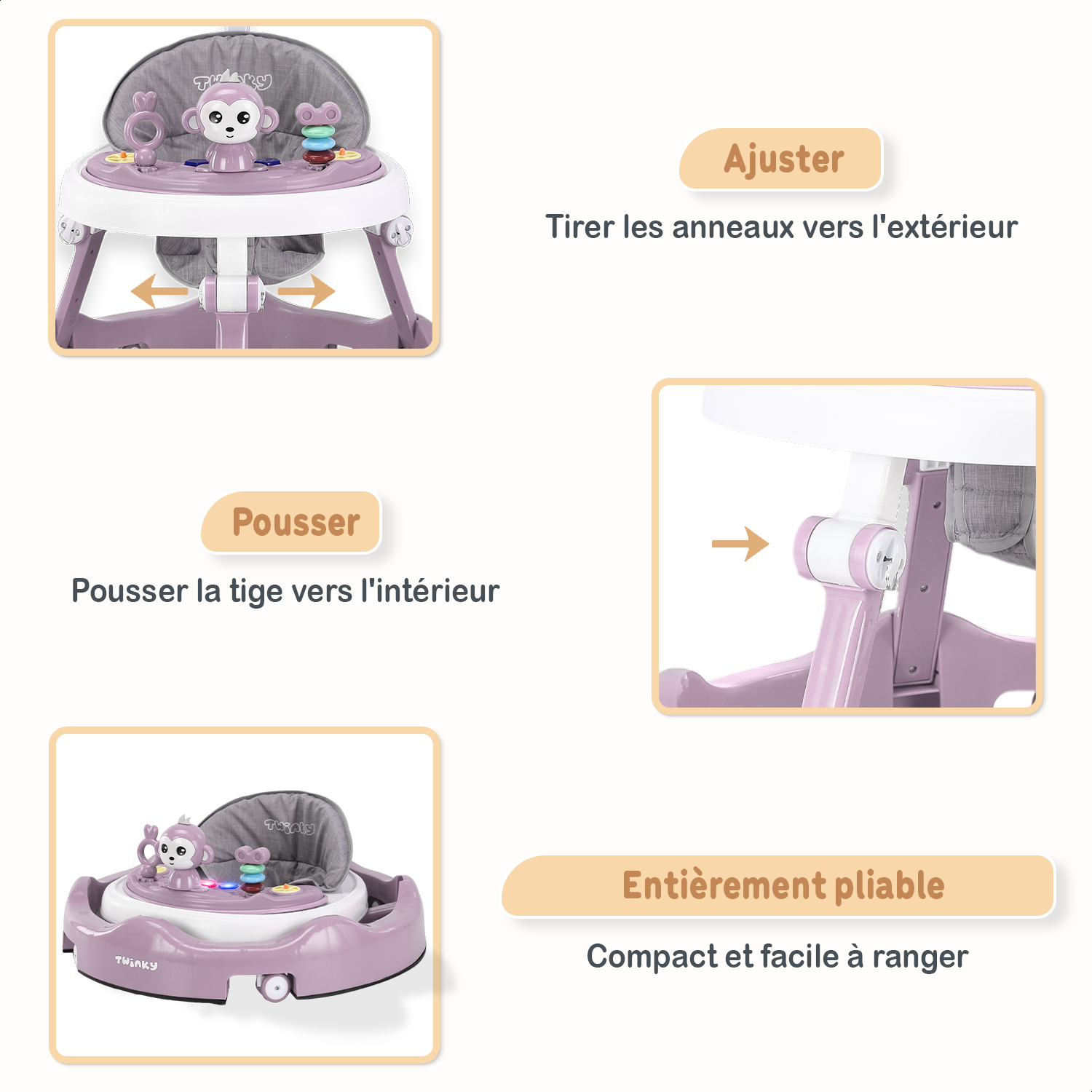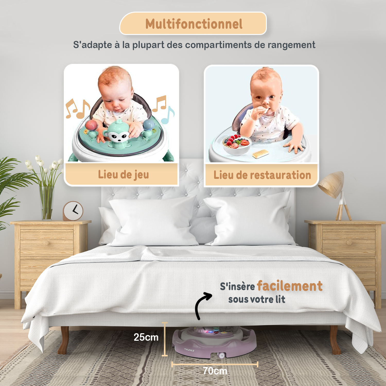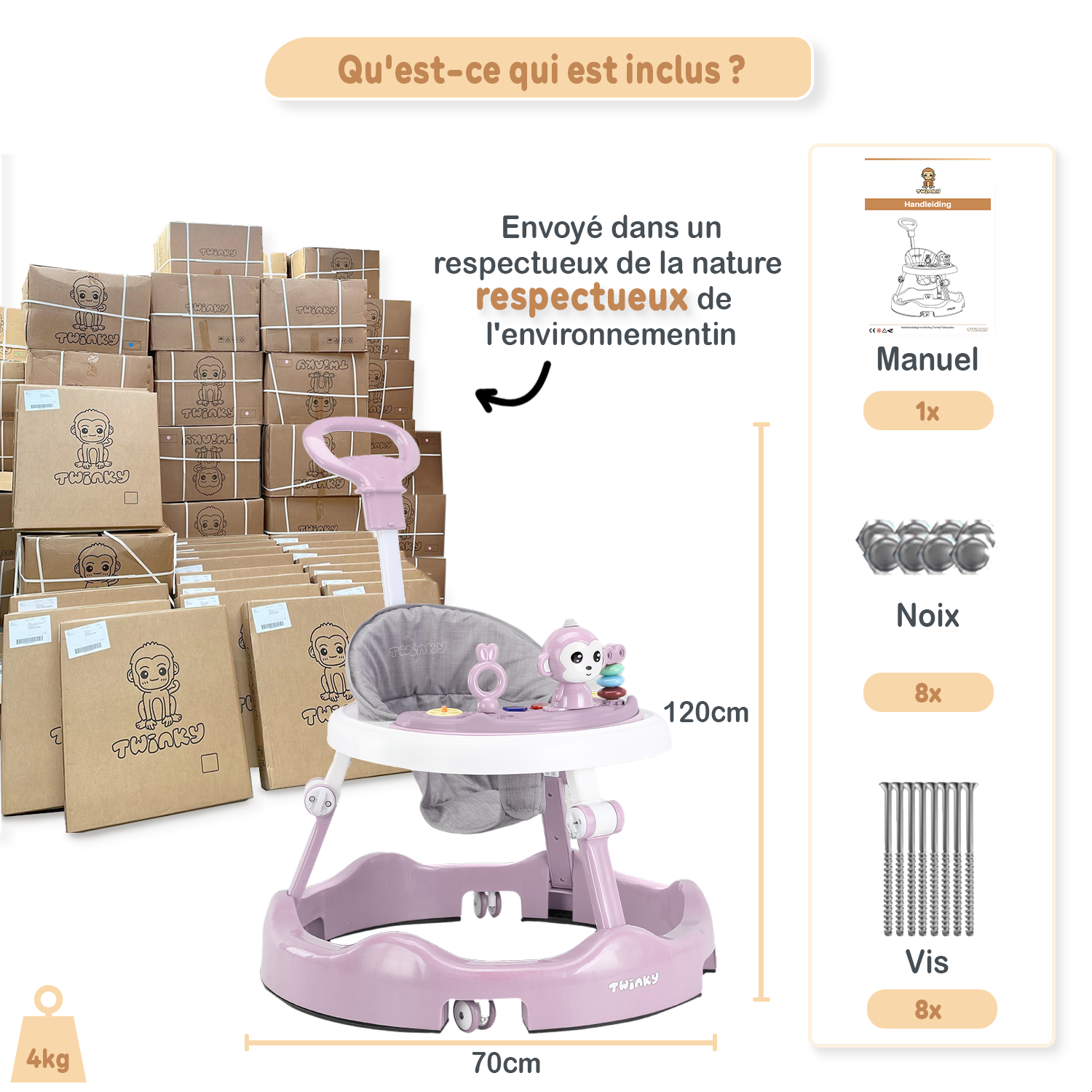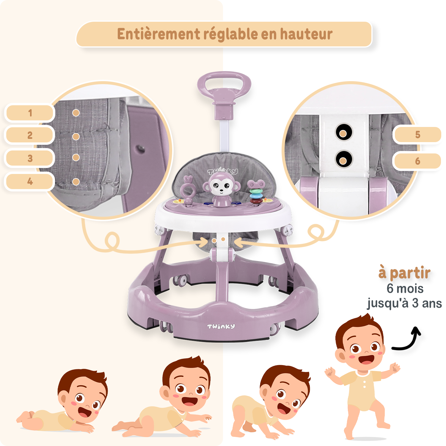 Apprends à ton ange à marcher avec la trotteuse Twinky — sûre, stimulante et appréciée par des milliers de parents. La trotteuse d’activités qui grandit avec ton bébé.