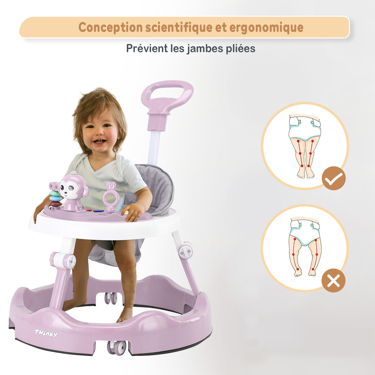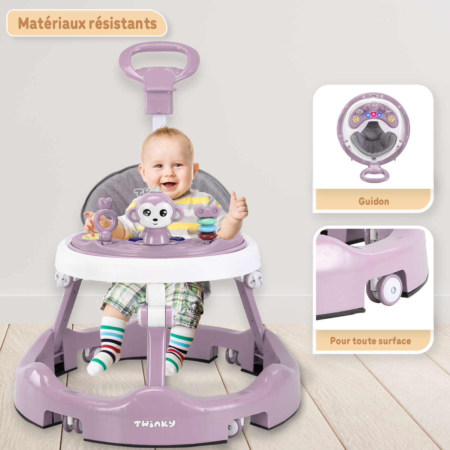 Le Twinky Babywalker accompagne votre tout-petit dans ses premiers pas, de manière sûre, ludique et élégante. Convient aux garçons comme aux filles, avec tout le nécessaire pour des heures de plaisir.