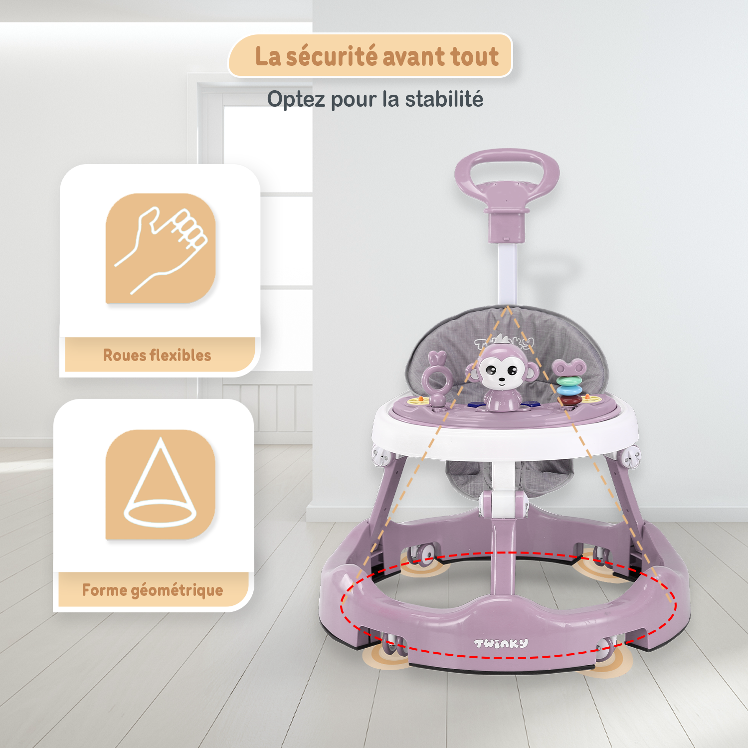 Les premiers pas sont une étape que vous n’oublierez jamais. Un moment rempli d’émerveillement, de fierté et d’un brin de nervosité. Le Twinky Babywalker est conçu pour rendre cette première exploration aussi sûre et confiante que possible.
